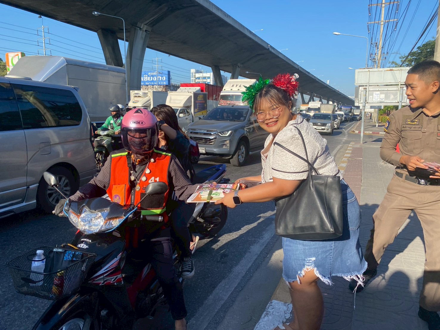 ชมรูปภาพเพิ่มเติมได้ที่บุคลากรของศูนย์บรรณสารสนเทศ ร่วมกิจกรรม Community Engagement “คนหัวเฉียวมีจิตอาสารับใช้สังคม” ่ด้วยความร่วมมือจากตำรวจชุมชนสัมพันธ์ (บางแก้ว) มอบหนังสือ “ส่งความสุข สนุกกับการอ่าน” เนื่องในโอกาสวันขึ้นปีใหม่ 2569 รวม 110 ชุด (ประกอบด้วยเอกสารจำนวน 10 รายการ) ให้กับประชาชนที่สัญจรไปมา โดยรอบมหาวิทยาลัย หนังสือที่มอบให้เป็นการดูแลสุขภาพด้วยตนเอง เพื่อความมีสุขภาวะที่ดี การรู้เท่าทันสื่อ เพื่อป้องกันการถูกหลอกจากมิจฉาชีพ เป็นการส่งเสริมการเข้าถึงการอ่าน การศึกษา อย่างเท่าเทียม สำหรับคนทุกช่วงวัย รวมทั้งข้อมูลสำคัญที่ต้องทราบ เมื่อต้องการแจ้งเหตุด่วน เหตุร้าย หรือต้องการความช่วยเหลือ เมื่อเช้าวันอังคารที่ 23 ธันวาคม 2568 เวลา 08.00 น.