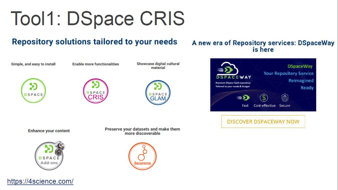 เครื่องมือต่าง ๆ ที่เป็นตัวช่วยให้ผลงานทางวิชาการได้รับการมองเห็น ซึ่งมหาวิทยาลัย/หน่วยงาน รวมทั้งนักวิจัย สามารถดำเนินการได้ เช่น Tool1: DSpace CRIS, Tool2: Research Portal, Tool3: Google Scholar, Tool4: ORCID for Research, Tool5: ResearchGate, Tool6: Linkedin, Tool7: Publish in Journals, Tool8: DOI, Tool9: DOAJ