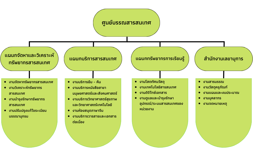 แผนภูมิโครงสร้างองค์กร (Organization Chart) แผนภูมิการบริหารงาน (Administrative Chart) บุคลากรศูนย์บรรณสารสนเทศ สุภาพร ชัยธัมมะปกรณ์ผู้อำนวยการศูนย์บรรณสารสนเทศ รัชนี นิลขำเจ้าหน้าที่ธุรการ ชนัญชิดา เพ็ชรสังวาลย์เจ้าหน้าที่ธุรการ มธุพจน์ รัตนะนักวิชาการจดหมายเหตุ ดุษษา โชติกวิบูลย์หัวหน้าแผนกจัดหาและวิเคราะห์ทรัพยากรสารสนเทศ สุวรรณา บรรณจิตรบรรณารักษ์ ศุภโชค สังฆพันธ์บรรณารักษ์ ลัดดา ฉันทนาวิวัฒน์โชติบรรณารักษ์ สุภาพร นิลแก้วบรรณารักษ์ อุทัยรัตน์ หอมพินิจเจ้าหน้าที่ห้องสมุด ไพลิน จับใจหัวหน้าแผนกทรัพยากรการเรียนรู้ กมลชนก อยู่วัฒนานักเทคโนโลยีสารสนเทศ ทศพล ศิลาศาสตร์นักเทคโนโลยีสารสนเทศ ลัทธวัฒน์ ริมปิรังษีนักเทคโนโลยีสารสนเทศ ณัฐชยา วชิรปัทมาหัวหน้าแผนกบริการสารสนเทศ วรรณา โตพิบูลย์พงศ์บรรณารักษ์ ชลธิชา อำทะวงษ์เจ้าหน้าที่ห้องสมุด จิรภิญญา เพ็ญจันทร์บรรณารักษ์ สมศรี ประสมพงษ์เจ้าหน้าที่ห้องสมุด พิมพ์มาดา วงษ์ตรีศรบรรณารักษ์ อุไรรัตน์ ผาสินเจ้าหน้าที่ห้องสมุด ศุภชนิตร ตั้งเจริญบำรุงสุขบรรณารักษ์ รุ่งทิวา ธัญญารักษ์เจ้าหน้าที่ห้องสมุด ปัญญา วงศ์จันทร์เจ้าหน้าที่ห้องสมุด Views: 1,461